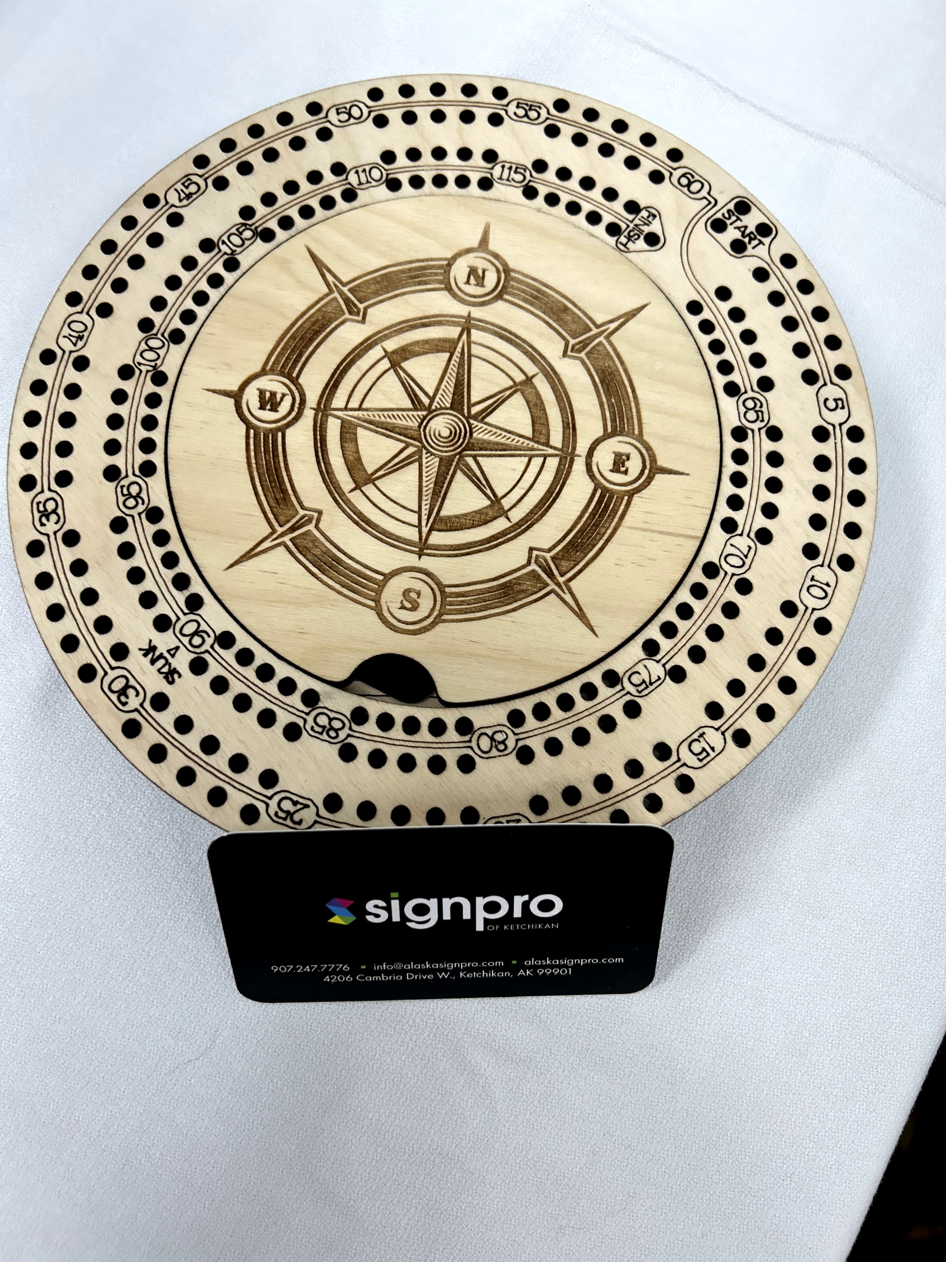 Any cribbage lover appreciates the artistry associated with cribbage boards everywhere. This one is no different. A beautifully carved board by Sign Pro.