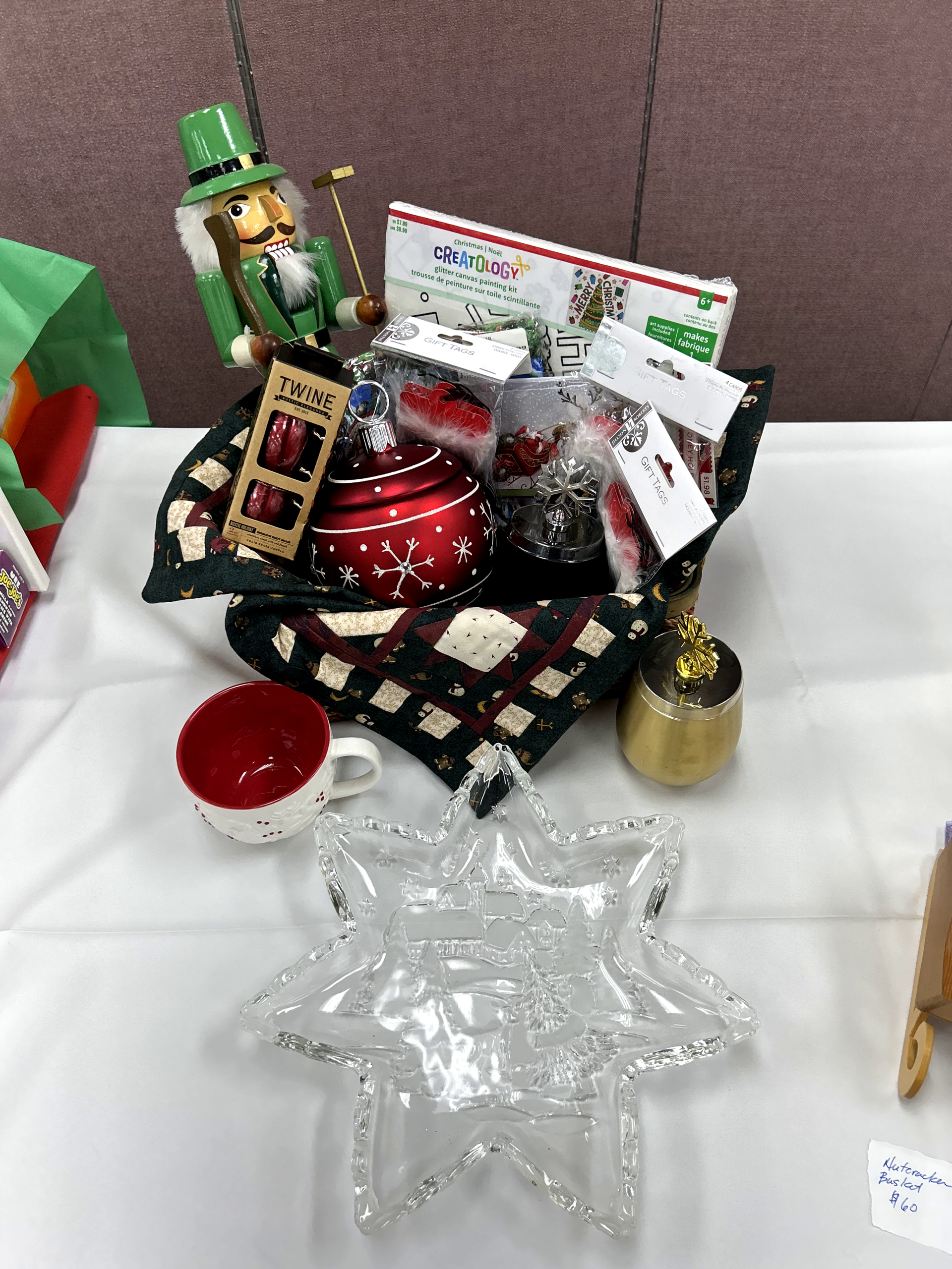 A sundry of Christmas décor adds to the spirit of the season, including a nutcracker, ornament candy dish, glass serving dish and much more.
