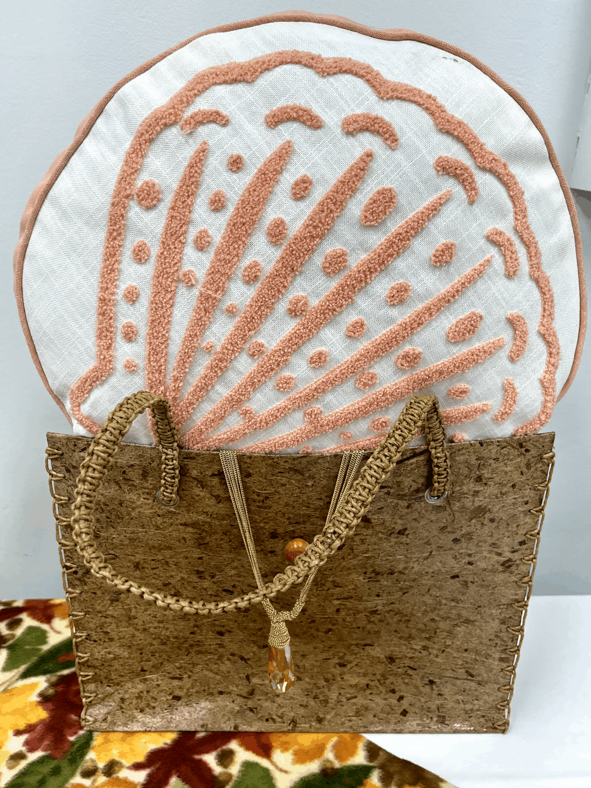 What a nice touch! – this shell embroidered pillow along with a sturdy shopping bag!!